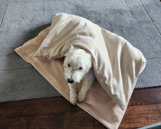 Doggie Duvet and Beige Stripe pattern cover Designed and handcrafted in the UK