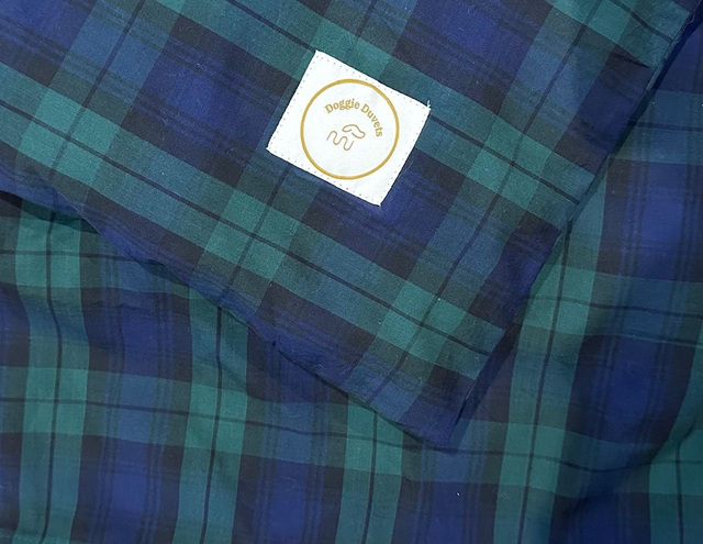 Doggie Duvet and Green / Blue Tartan pattern cover Designed and handcrafted in the UK