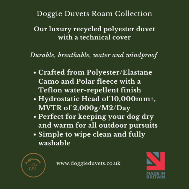 Doggie Duvet and Roam Outdoor Range Cover- Waterproof and breathable for outdoor pursuits